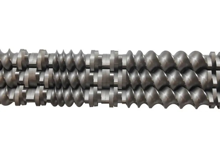 Structurally, the three-screw extruder features three screws arranged in a straight line and rotating in the same direction.